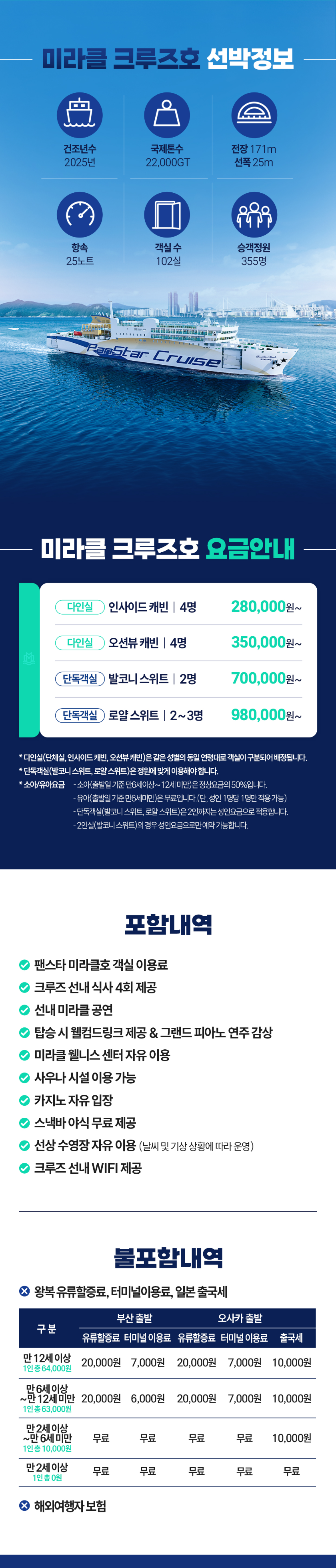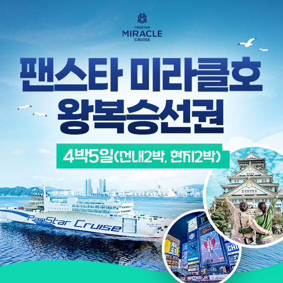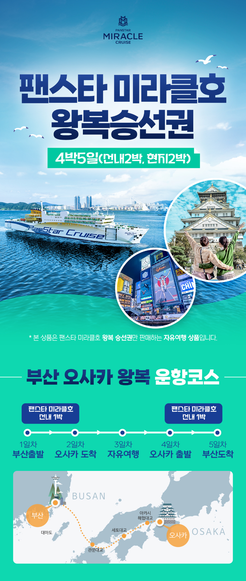 > 팬스타 미라클호 > [T 멤버십 전용] [4박5일] 부산 오사카 팬스타 왕복승선권